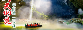 13:00-16:00游览【洞天仙境】(含游船),因岩洞中有一大一小洞成一特大的“!”号可望蓝天而得名,洞内小河水深盈丈,乘船入内游览,洞壁遍挂钟乳-,其一岩石神似白衣观音站于峭壁之上,为乡民祈祷幸福吉祥,乡间称“观音岩”。该岩洞是一个溪流穿山而过的岩洞,乘船游览,洞内洞厅广阔,钟乳石形态多样,洞顶有2个穿孔通天,光线从中透入洞里。生长着茂密的阴生植物,密密麻麻,枝叶婆娑,呈原始状态,像这样的洞内小森林确是一个罕见奇观。看着这里有光、有水、有地、有林,感觉像走入另一个世界。