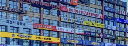 【弹幕墙】校园外的“大学城”,因上面挂满了中韩文的各种招牌,所以便一跃成为了网红打卡地,还有了一个俏皮的名字“弹幕墙”。